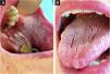 Her 23-year-old son also sought consultation for the presence of similar, asymptomatic lesions that had been present since birth. The lesions were of the same characteristics, affecting the bilateral buccal mucosa and the dorsal tongue (Fig. 2).