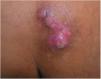 A 56-year-old male, HIV-positive, presented with a 3-day history of multiple indurated erythematous nodules with superficial and well-defined erosions on his right gluteus. Skin biopsy showed ballooning-necrotic keratinocytes and cultures were positive for herpes simplex 2. Genital herpes simplex infection recurrences may not be restricted to the anterior part of the genitalia and clinical presentation in the lumbar area or gluteus must be differentiated from varicella-zoster virus infection. Tumor-like presentation is a very rare manifestation of HSV cutaneous infection. It is important to take this morphological variant into consideration not to delay the diagnosis of a viral infection, especially in an immunosuppressed patient.
